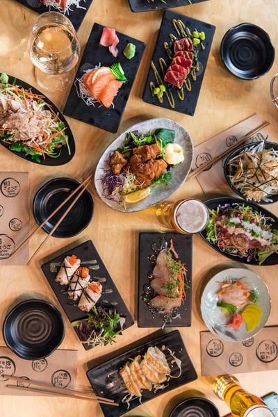 Sushi and Sashimi: Opt for minimalist, rectangular or oval sushi plates. These often come in subdued colors like black, white, or celadon green, which help the colors of the fish stand out.