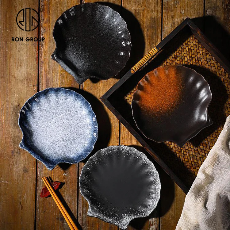 • Unique Wedding Banquet Party Decoration Restaurant Dinnerware Custom Porcelain Embossed Tray Shell Shape Dessert Ceramic Plate