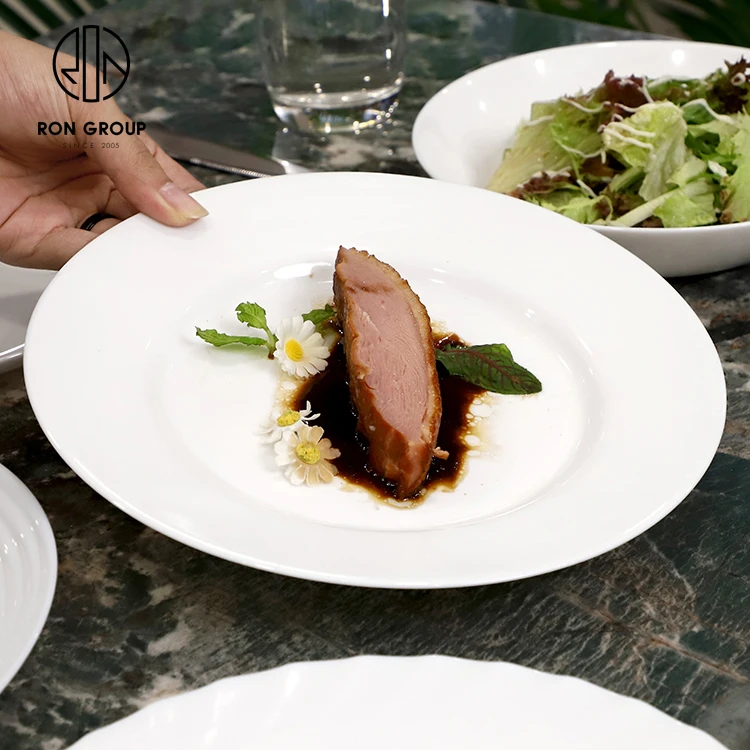 • White Round Ceramic Steak Plate for Dessert and Fine Dining Restaurant Service