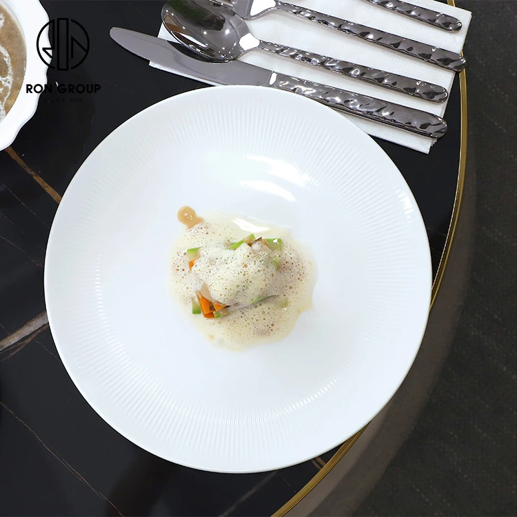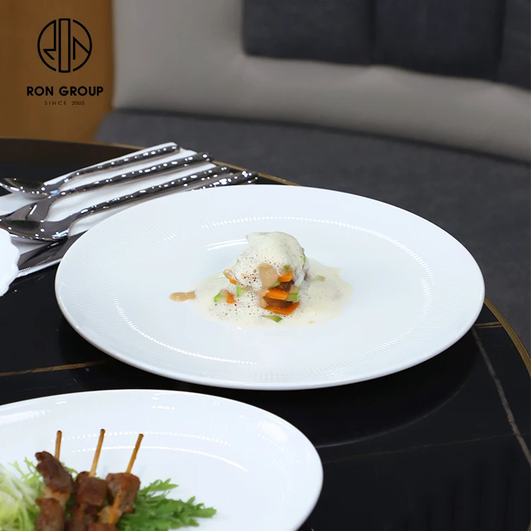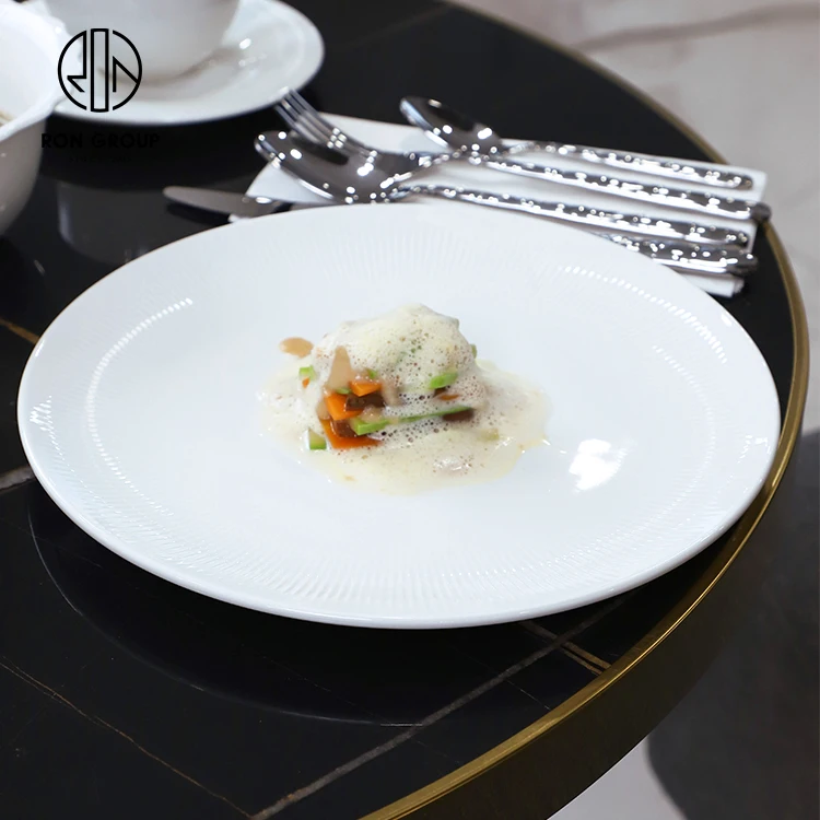 Large White Round Ceramic Serving Plate for Salad, Steak and Fine Dining