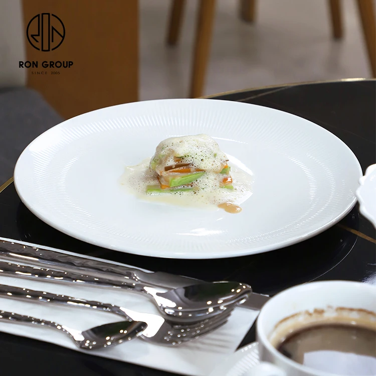 • Large White Round Ceramic Serving Plate for Salad, Steak and Fine Dining