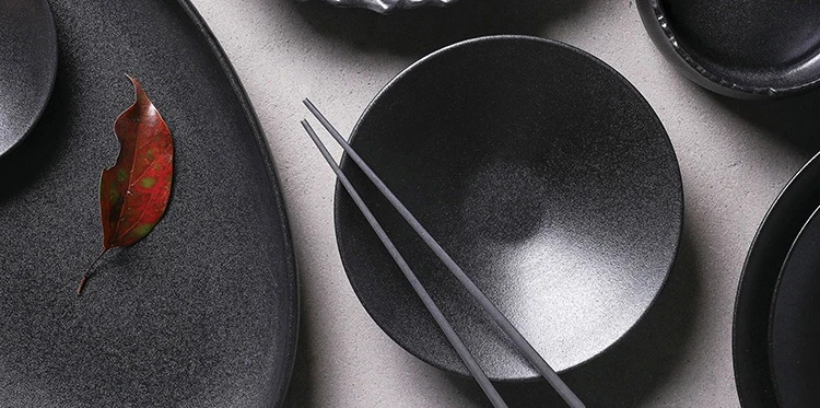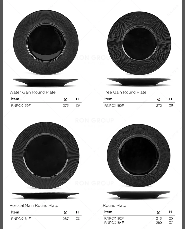 • Good hotel round dinner dishes cheap restaurant black ceramic plates