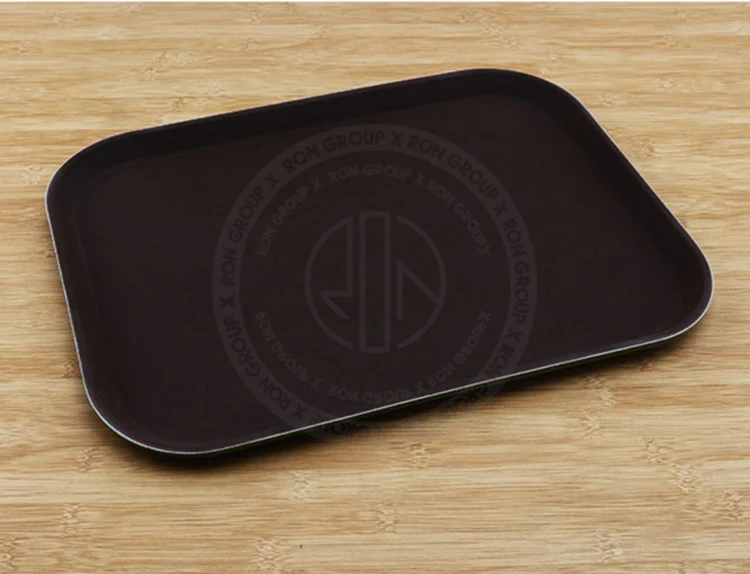 Hotel Restaurant Plastic ABS Non-slip food Serving Tray custom logo brown 100% melamine plastic fast food tray