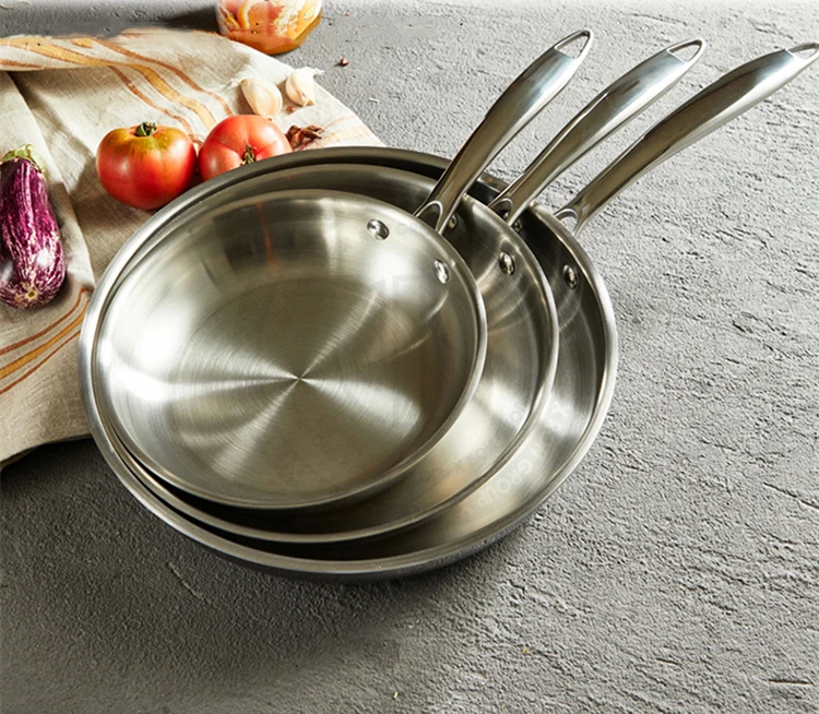 thickened kitchenware stainless steel cookware set 3 pcs wholesale restaurant OEM logo non stick cooking pan set with handle