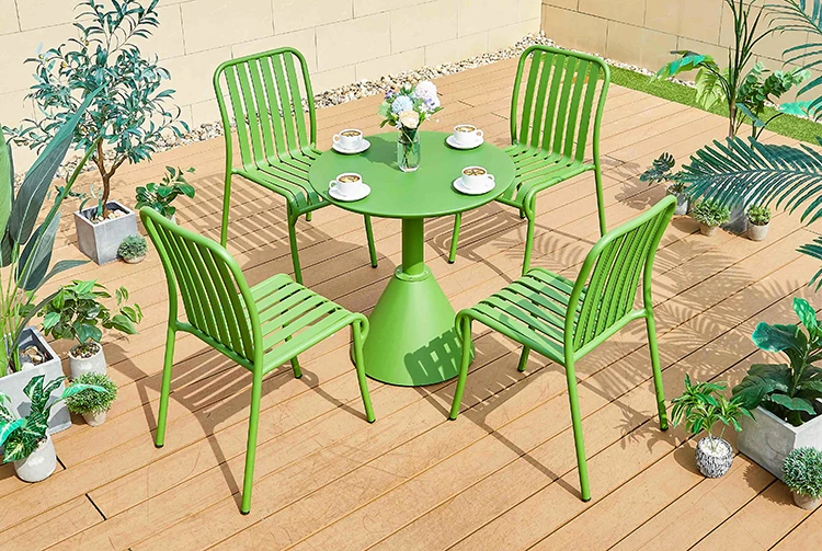 Cheap Price Nordic American Negotiation Cafe Coffee Shop Garden Restaurant Stable Tea Blue Round Aluminum Outdoor Tables